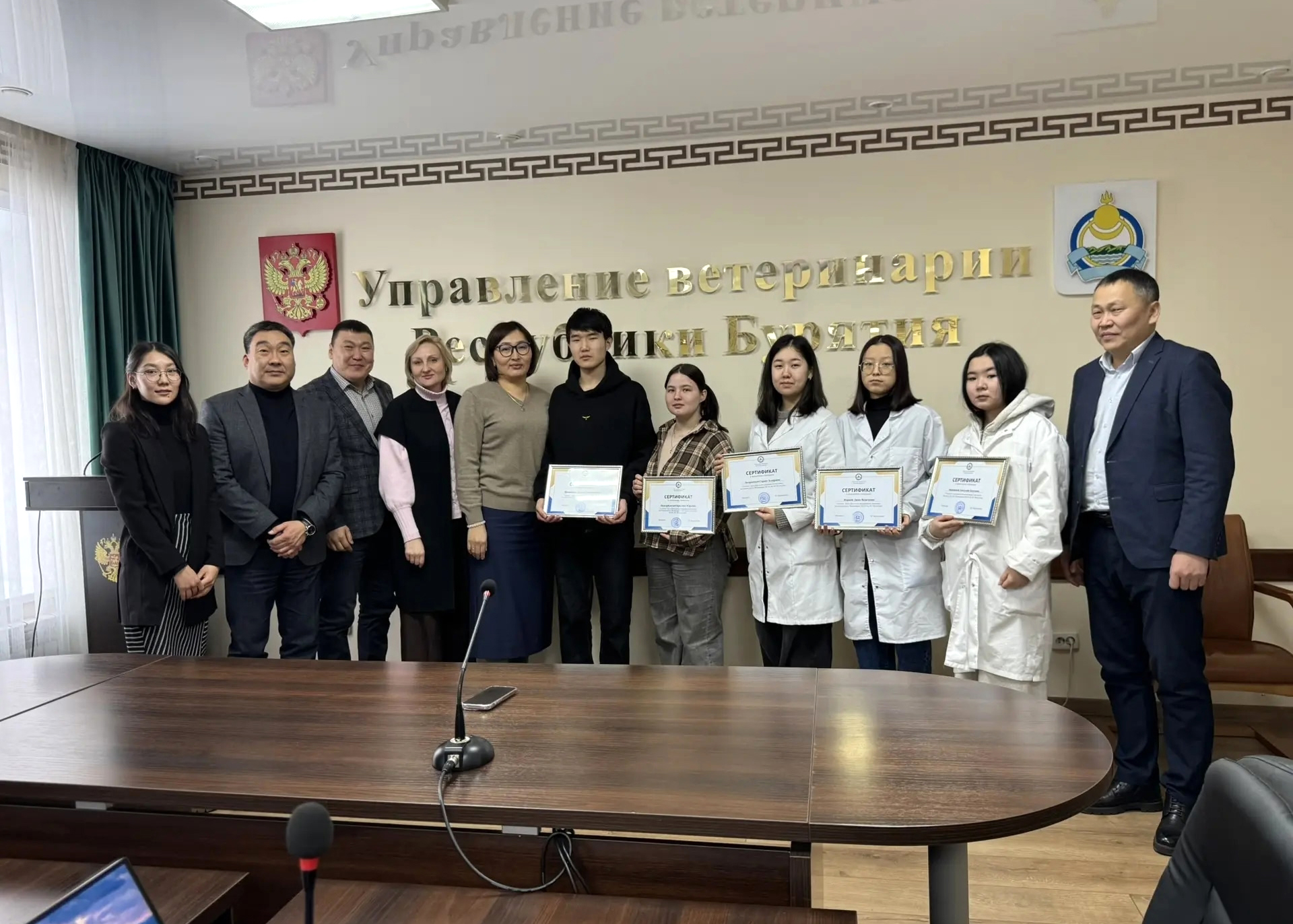 В Управлении ветеринарии Республики Бурятия состоялось вручение сертификатов на целевые стипендии ветеринарной службы. Поддержку получили 8 студентов первого курса факультета ветеринарной медицины Бурятской ГСХА, обучающихся по целевым договорам.